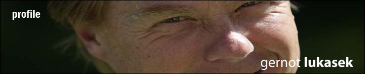 gernot lukasek is as unique as his work. he encounters his fellow human beings with appreciation and respect. he's charming and pleasantly reserved. an impassioned cook, he loves nature, serenity and classical music.